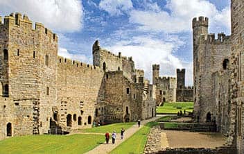 Enjoy the beautiful Welsh countryside with its charming towns and farms and visit the imposing Caernarfon Castle begun by Edward I in 1283. This mighty fortress was a residence and seat of government as well as a military stronghold. The current Prince of Wales received his title here in 1969.