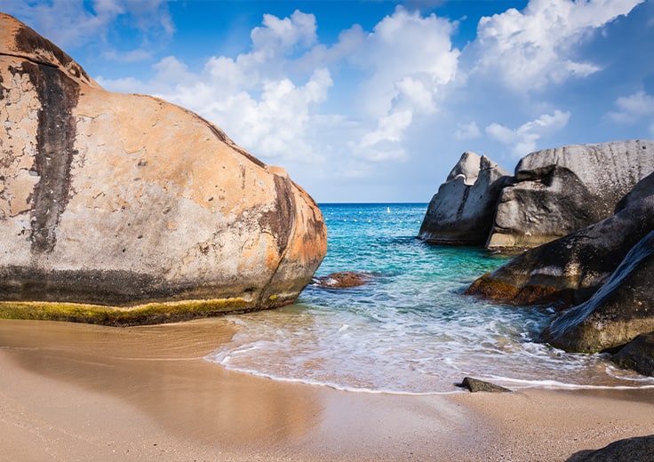 The Baths, a dramatic beach near Tortola scattered with giant rocks, was named by English settlers after the sheltered pools tucked between granite boulders which reminded them of seaside bathing rooms back home. As I wandered through the sunlit grottoes and calm tidal pools, it was easy to see why the name stuck.