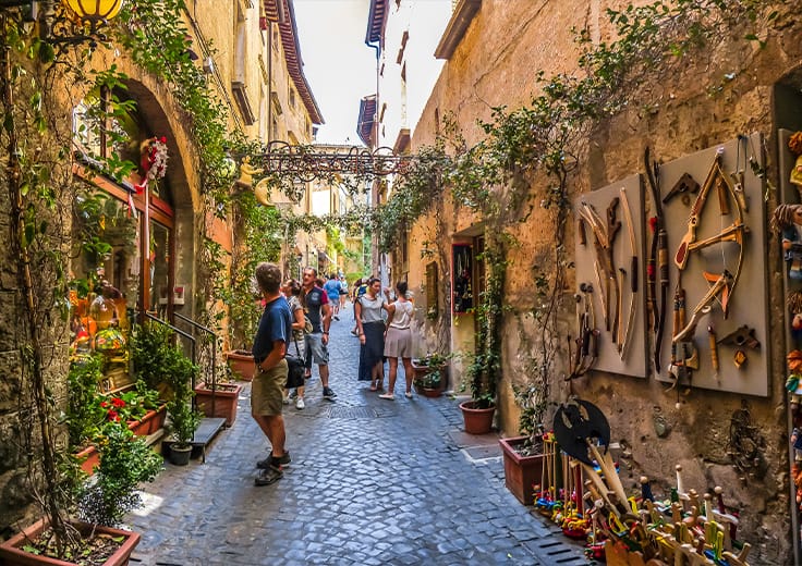 Even the marquee destination of Rome serves up undiscovered places and unusual adventures if you know where to look. You might strike out on an exploration of Umbria and visit Orvieto, an off-the-beaten-path, refined medieval town that was once an Etruscan citadel. It’s seen little change since the 14th century and is known for a dry white wine crafted from trebbiano grapes grown in the surrounding vineyards. You’ll have time to enjoy traditional Umbrian dishes at a local restaurant as well as stroll its shop-lined lanes and alleyways, full of ceramics, Pinocchio dolls and signature Orvieto wines. Or you might wish to set off into the lush Lazio woods with a truffle hunter and accompanying dog in search of buried truffles – and yes, enjoy a selection of Italian truffle-based specialty foods at the end of this gourmet experience.