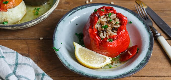 One of my all-time favorite dishes is called Gemista, which is a dish of vegetables such as tomatoes, zucchini and green peppers stuffed with rice – this is really traditional, along with moussaka, a delicious layered eggplant and meat dish. Of course, one of Greece’s most famed dishes is the Greek salad, and this you will find on every family’s table in Greece and in every restaurant. We really do love it. This simple dish shines with tomatoes, feta, olives and cucumber, usually a sprinkle of oregano and is always drizzled with some local extra virgin olive oil. I am also a big fan of dolmades, stuffed grape leaves or cabbage leaves – depending on the season.