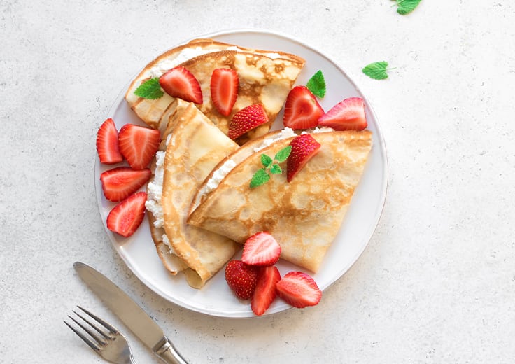 Plus, crêpes are so versatile – there is a recipe for every occasion and season. Add some fresh berries from your local farmers market and a dollop of crème fraîche, and they make the perfect summertime breakfast or after-dinner treat.
